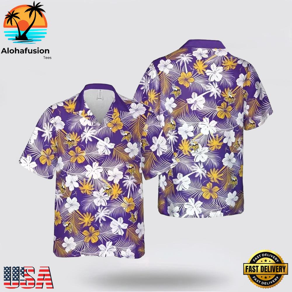 Photos Of Minnesota Vikings Flowers Pattern Hawaiian Shirt , NFL Aloha Hawaiian Shirt