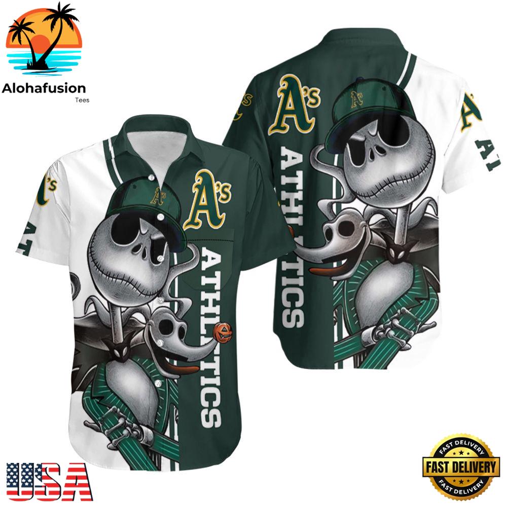 Photos Of MLB Oakland Athletics Jack Skellington And Zero Summer Aloha Hawaiian Shirt