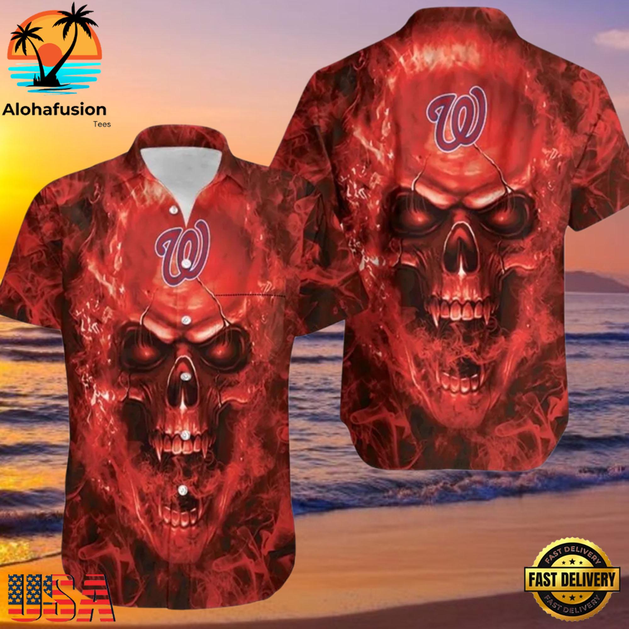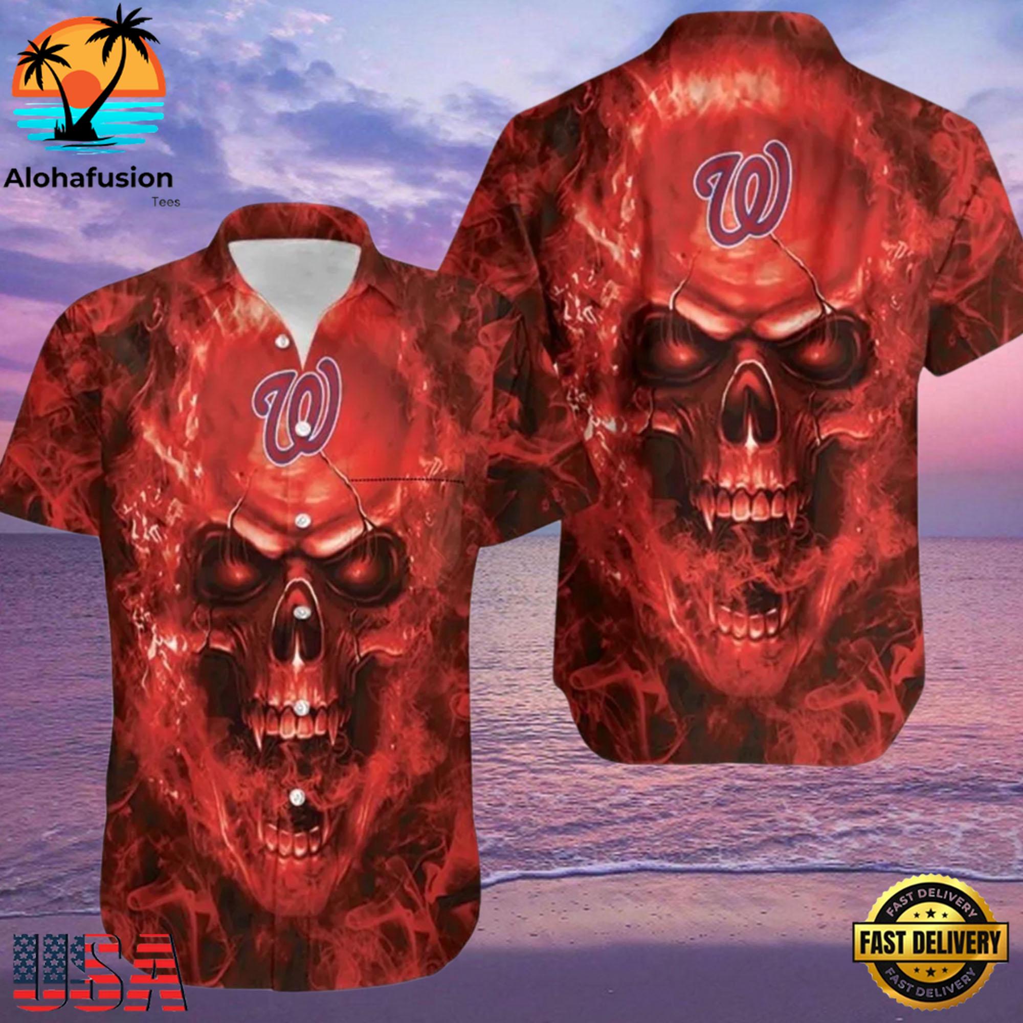 Photos Of MLB Washington Nationals Skull Aloha Hawaiian Shirt For Mens
