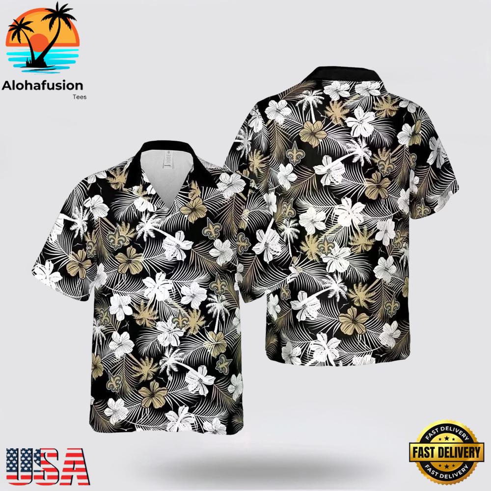Photos Of New Orleans Saints Flowers Pattern Hawaiian Shirt , NFL Aloha Hawaiian Shirt