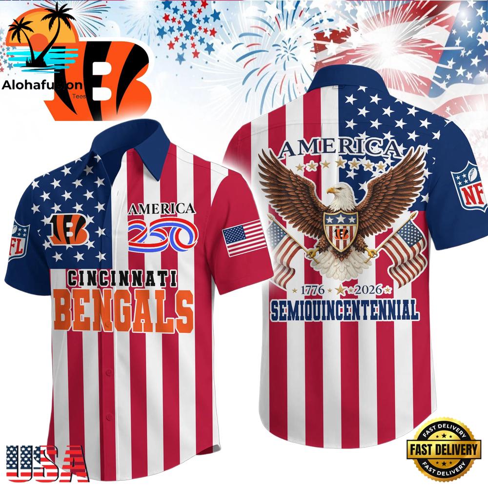 Photos Of NFL Cincinnati Bengals Liberty Eagle Patriotic 250 Years America Hawaiian Shirt