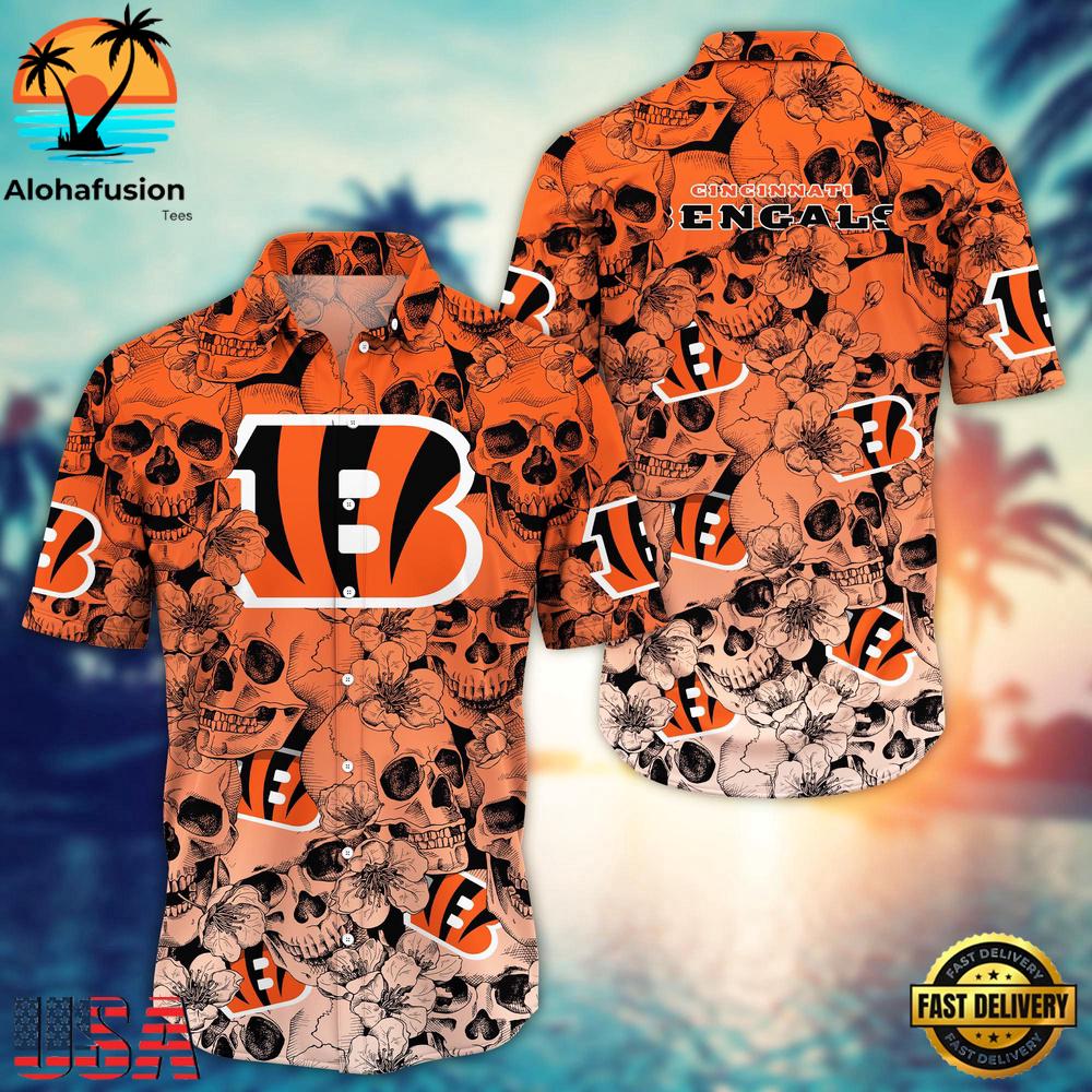 Photos Of NFL Cincinnati Bengals Skull Pattern Aloha Hawaiian Shirt