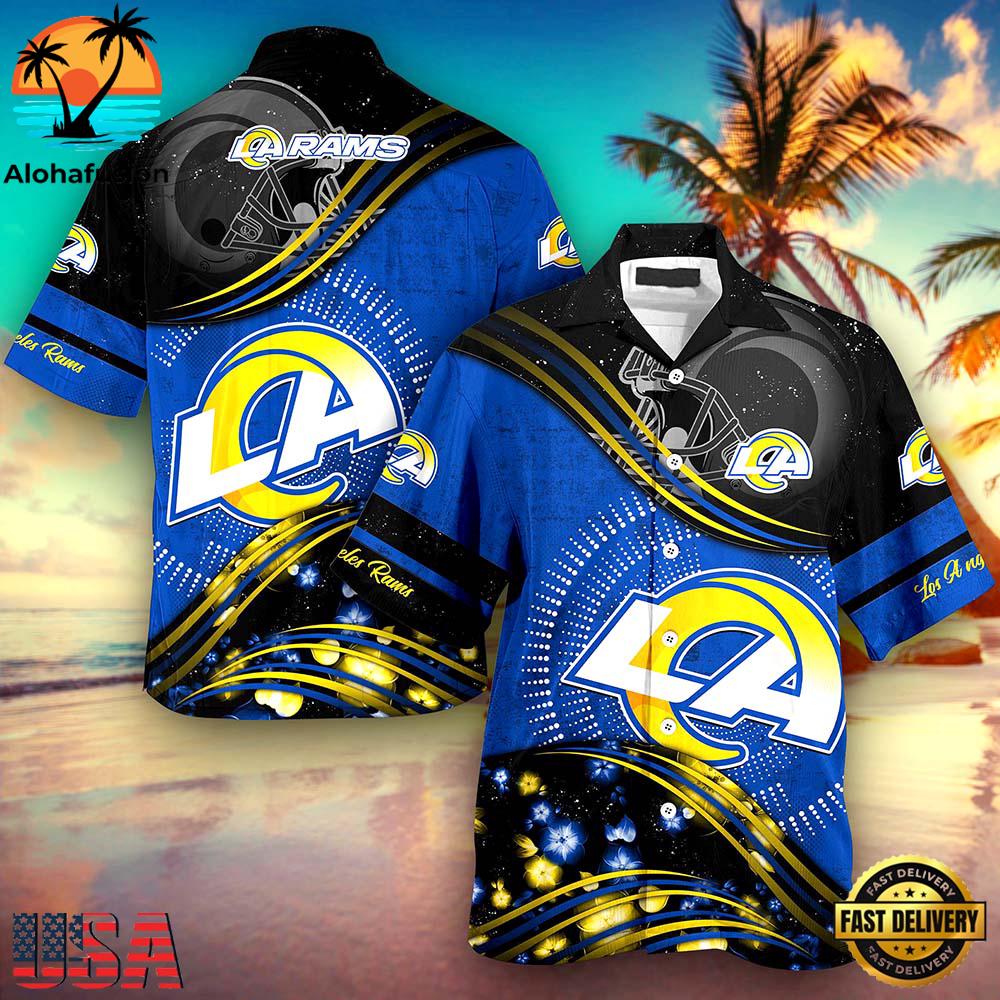 Introducing the NFL Custom Los Angeles Rams Hawaiian Shirt, the ultimate fusion of fandom and fashion, tailored specifically for the ardent supporters of the revered Los Angeles Rams. This unique piece of apparel transcends typical sportswear, offering an exquisite blend of team pride and tropical flair, all meticulously crafted for the 2023 fan fashion trends.