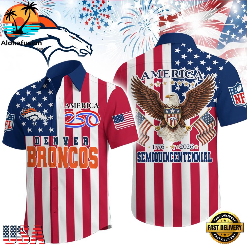 Photos Of NFL Denver Broncos Liberty Eagle Patriotic 250 Years America Hawaiian Shirt