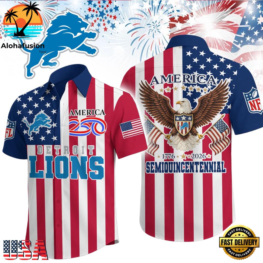 Photos Of NFL Detroit Lions Liberty Eagle Patriotic 250 Years America Hawaiian Shirt
