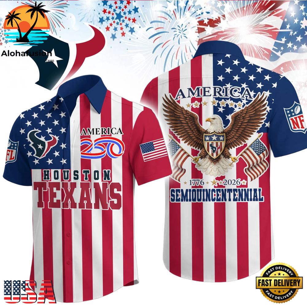 Photos Of NFL Houston Texans Liberty Eagle Patriotic 250 Years America Hawaiian Shirt