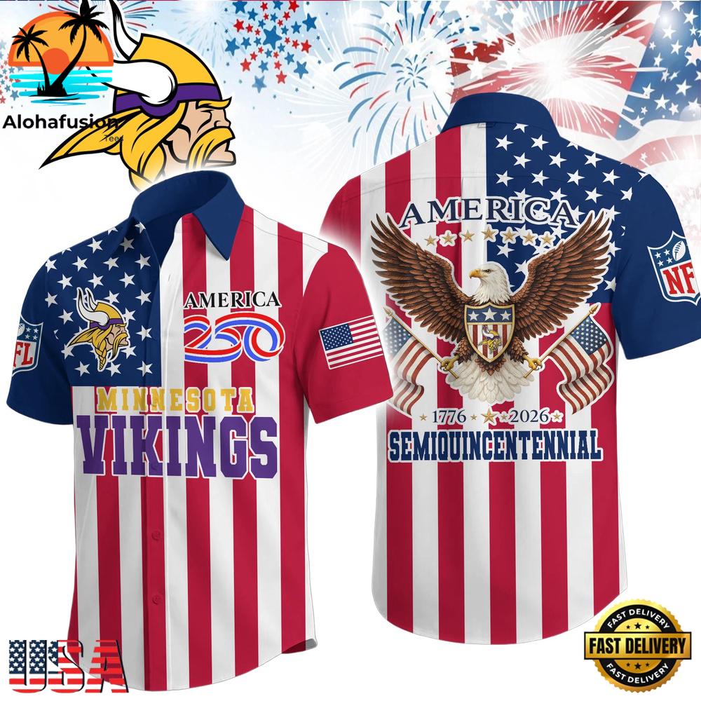 Photos Of NFL Minnesota Vikings Liberty Eagle Patriotic 250 Years America Hawaiian Shirt