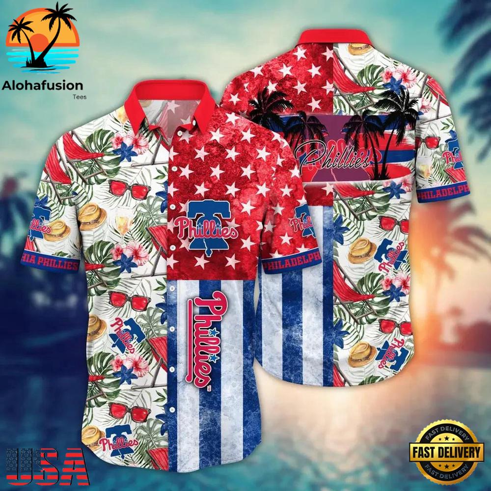 Photos Of Philadelphia Phillies Stars and Stripes Celebration Summer Hawaiian Shirt , Phillies Aloha Shirt